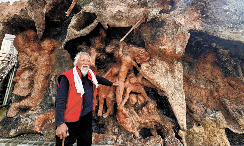 Kinjo showed Global Times reporters the sculpture he created themed Battle of Okinawa: Civilians are crying as they are driven out of air-raid shelters and swallowed by artillery fire; parents kill their own young children and are forced into “mass suicides.” He remains haunted by questions: Why did so many civilians die for no reason? Why, before the “Okinawa’s return to Japan,” were those killed by the US military compensated with only one dollar?