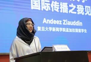 Andeez Ziauddin speaks at an event hosted by Fudan University’s School of Journalism. (Photo by Wu Jing)