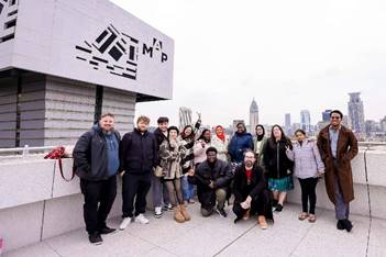 Online novelists from various countries pose for a picture during the third Shanghai International Online Literature Week in Shanghai. (Photo by Xiang Lai)