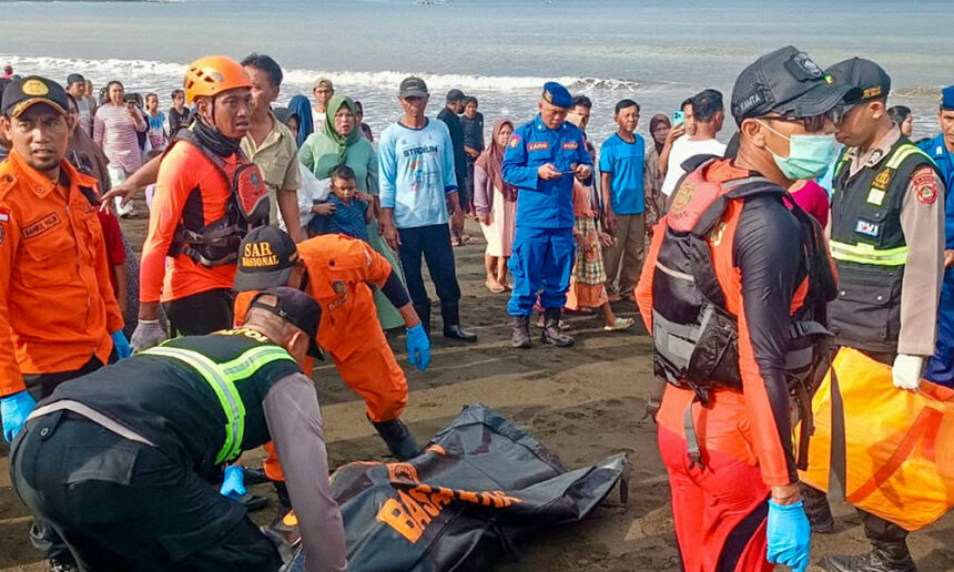 Video provided by the national rescue agency Basarnas showed what appeared to be the body of one person being carried to shore from a fishing boat in calm seas.