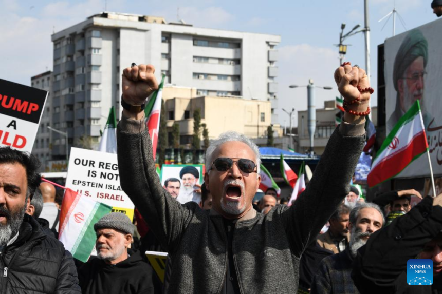 The crowd, waving Iran’s flags and holding pictures of Iran’s late Supreme Leader Ali Khamenei, chanted slogans against the United States and Israel.