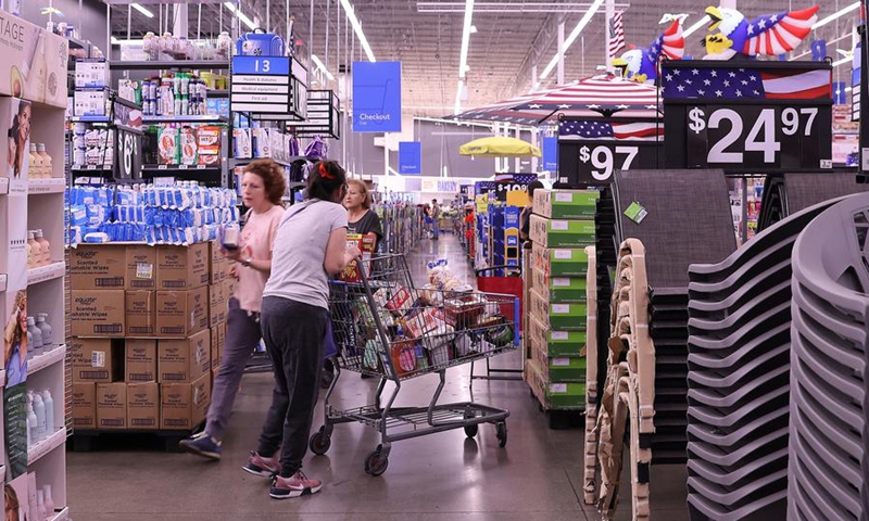 (250524) -- LOS ANGELES, May 24, 2025 (Xinhua) -- Customers shop at a Walmart store in Los Angeles County, California, the United States, May 20, 2025. TO GO WITH "Feature: U.S. Walmart shoppers feeling tariff pinch" (Photo by Qiu Chen/Xinhua)