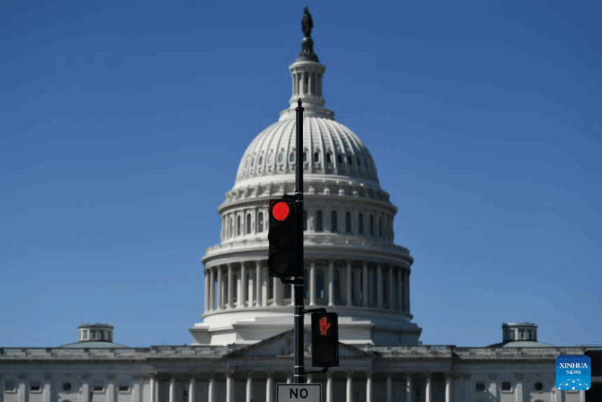(251001) — WASHINGTON, Oct. 1, 2025 (Xinhua) — The U.S. Capitol building and traffic lights are seen in Washington, D.C., the United States, Oct. 1, 2025. The U.S. Senate on Wednesday failed to approve a short-term spending bill, as the federal government entered its first shutdown in nearly seven years. (Xinhua/Li Rui)